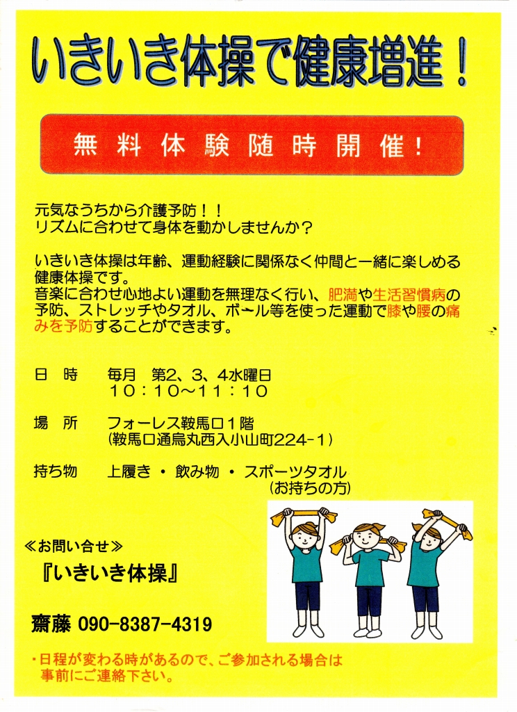 いきいき体操は年齢、運動経験に関係なく仲間と一緒に楽しめる健康体操です。